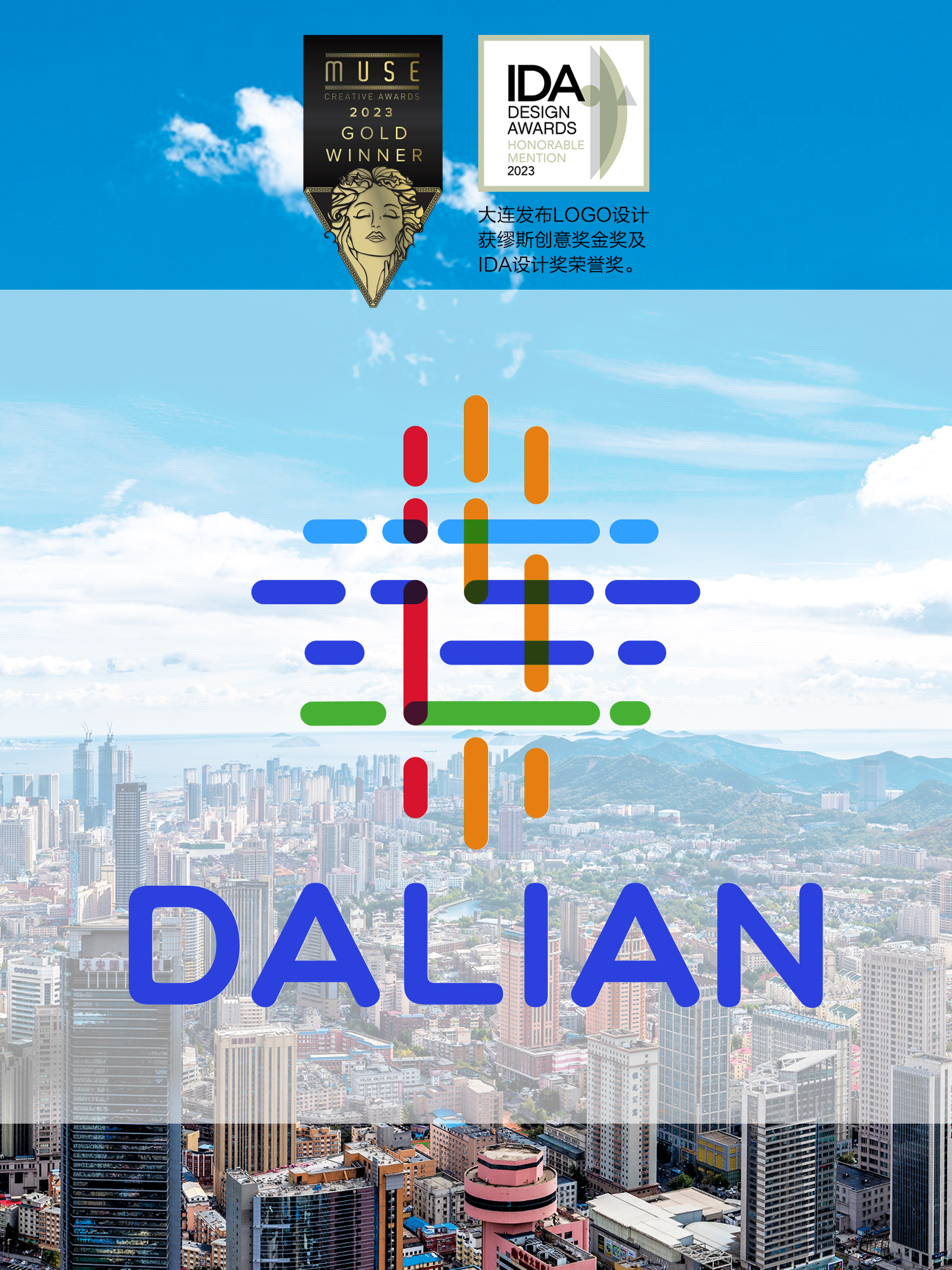 “大连发布”LOGO 凭卓越创意和设计理念,获 2023 年度 MUSE 缪斯创意奖金奖和美国 IDA 设计大奖荣誉奖。这些奖项是对平台视觉设计的肯定,也是对大连国际化大都市形象的认可,体现了大连作为全球枢纽城市的独特价值,展现其文化自信与创新精神。