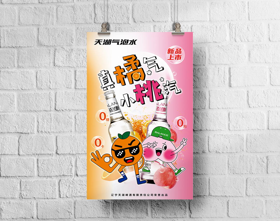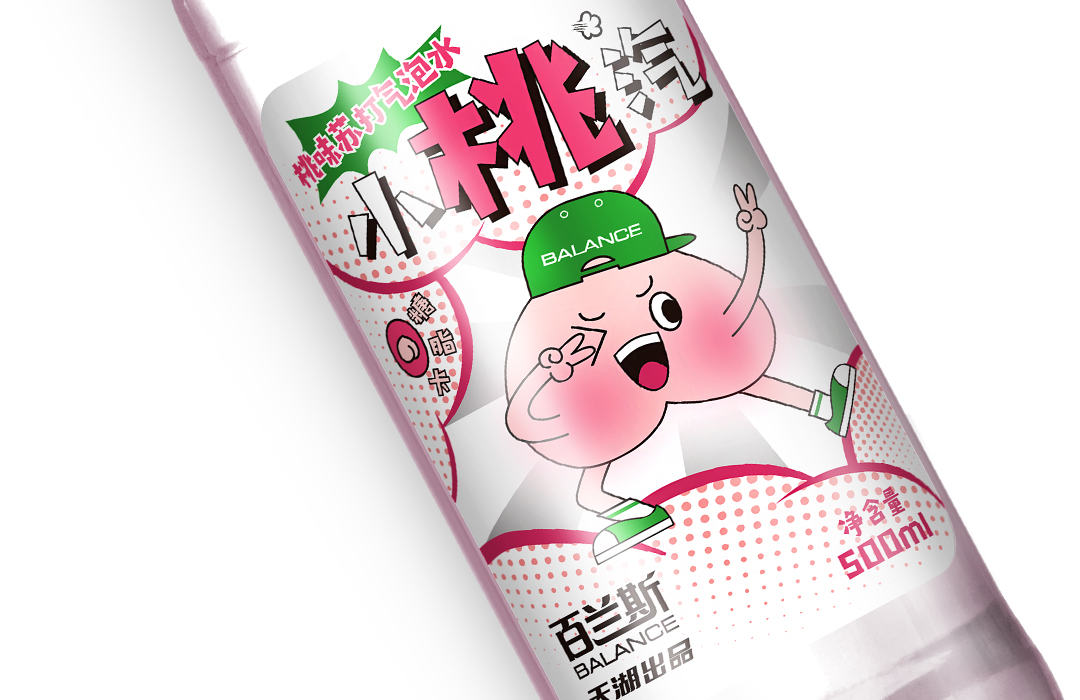 创意共和(大连)设计有限公司为天湖啤酒旗下百兰斯小桃汽苏打气泡水提供包装设计服务。