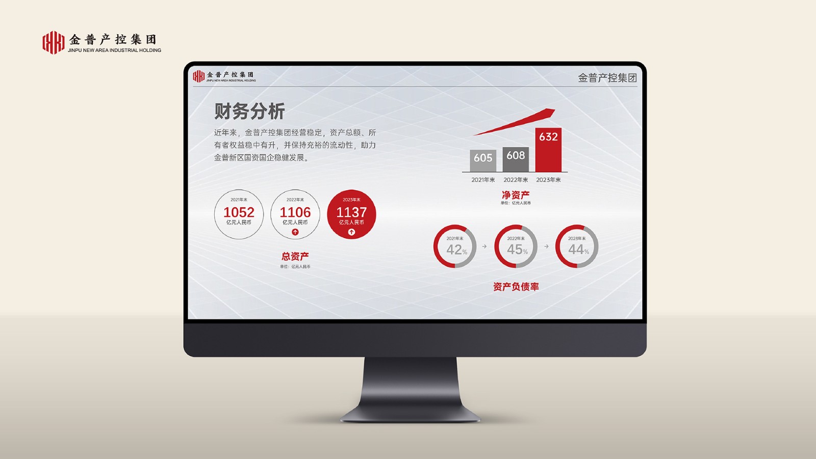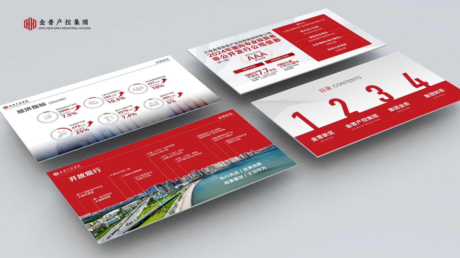 通过创意共和的精心设计,金普产控集团的 PPT 及展示物料在各类商务洽谈、项目汇报与招商引资活动中发挥了重要作用,成为集团对外展示形象、传递信息、拓展业务的重要工具,有效提升了集团的品牌影响力与市场竞争力。
