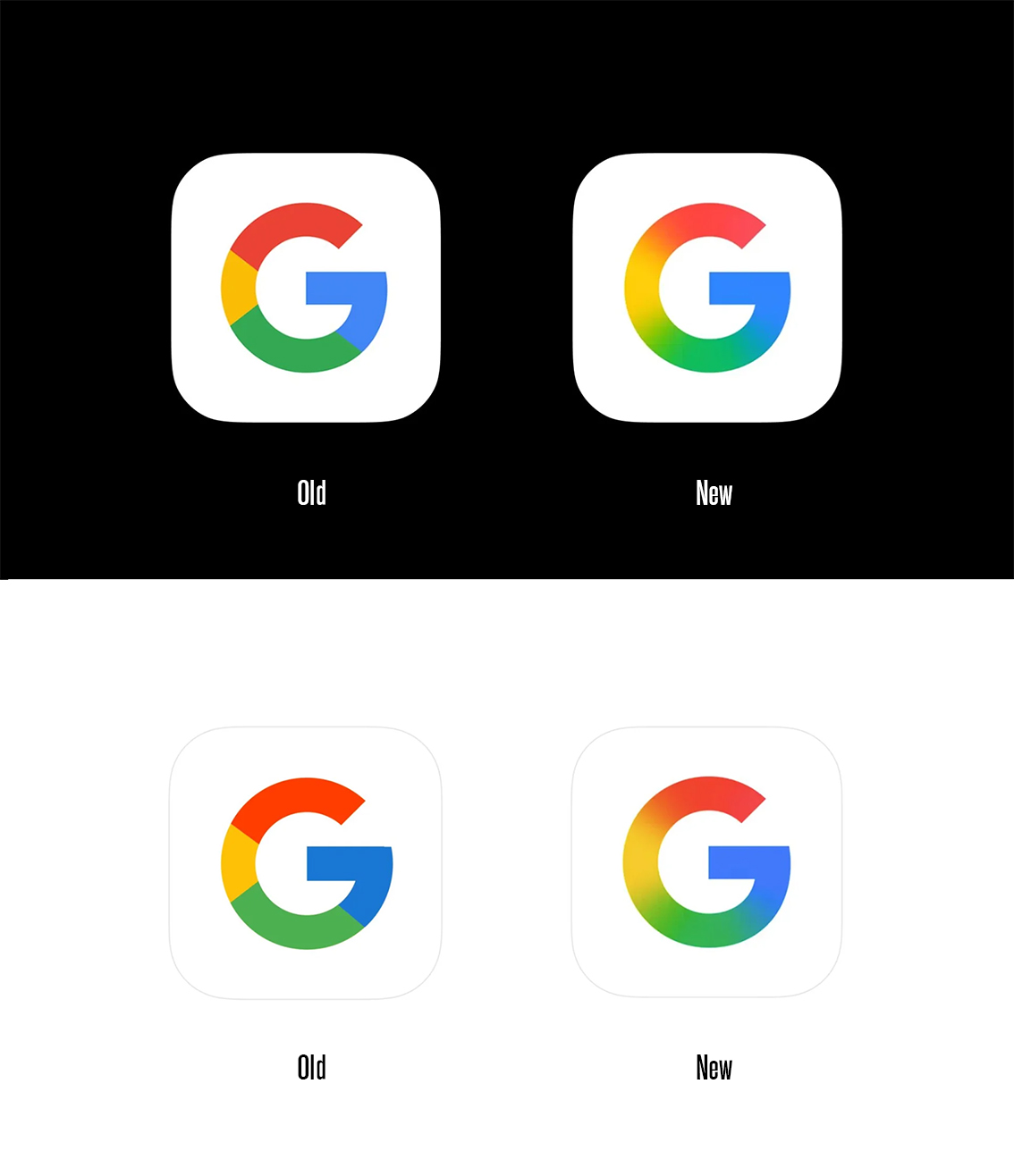 2025年5月12日,Google App推出了全新的图标设计,引发了设计界的关注。新旧图标对比鲜明,旧版图标采用典型的扁平化设计,颜色分块清晰,红、黄、绿、蓝四色界限分明,构成简洁直观的视觉效果。而新版图标则引入了渐变设计,色彩过渡柔和,原本分明的色块被流畅的色彩渐变所取代,赋予图标更灵动的视觉感受。
