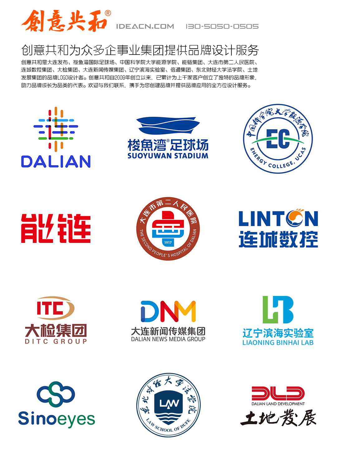 国家级院校与机构标识设计中,于明龙带领创意共和设计主持设计了中国科学院大学能源学院校徽、东北财经大学法学院院徽、国家重点实验室化学反应动力学全国重点实验室标识、滨海实验室标识、智鲲实验室标识、榆林中科洁净能源创新研究院标识以及大连市上海商会品牌LOGO 等。这些设计融合了学术理念与行业特质,既体现了院校的历史底蕴与学术追求,又彰显了科学的独特魅力与创造精神。
