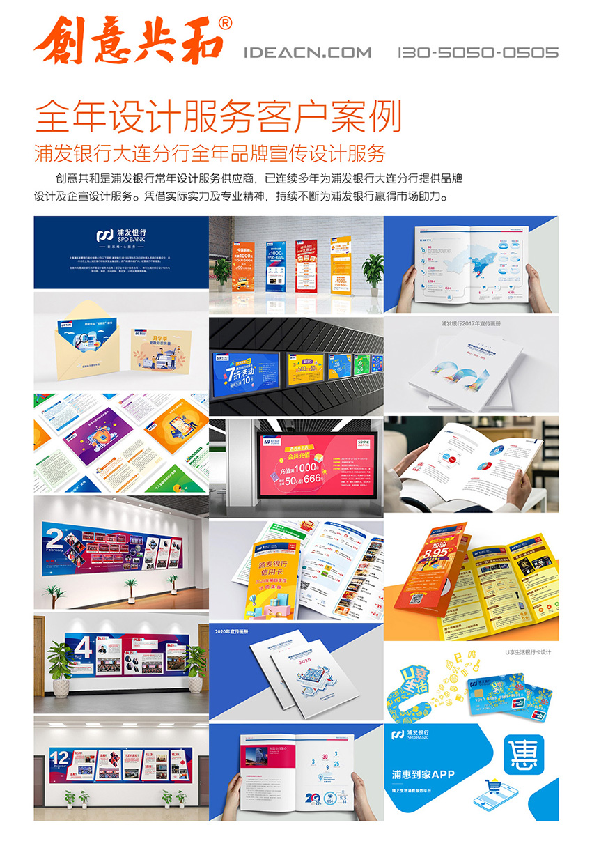 金融品牌的图文设计,核心是传递“可靠感”与“时代感”。作为浦发银行大连分行的常年设计服务商,创意共和为其定制了“分层视觉策略”: