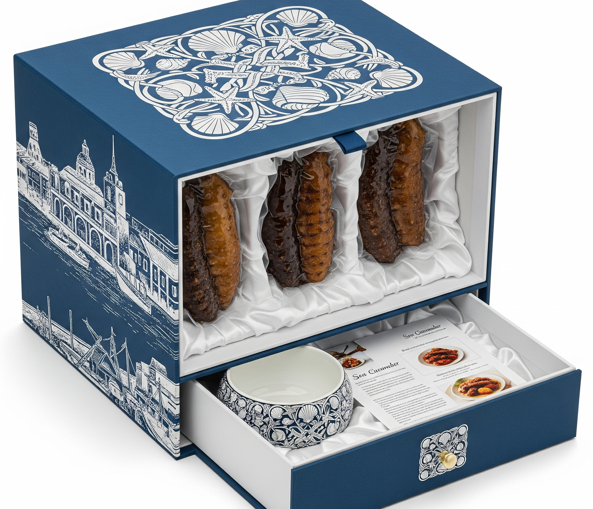 想要让海参包装持续创新,需要不断拓展思路,从不同角度寻找创新方向。以下是涵盖多个维度的海参包装创新思路,为大连海参品牌提供参考。