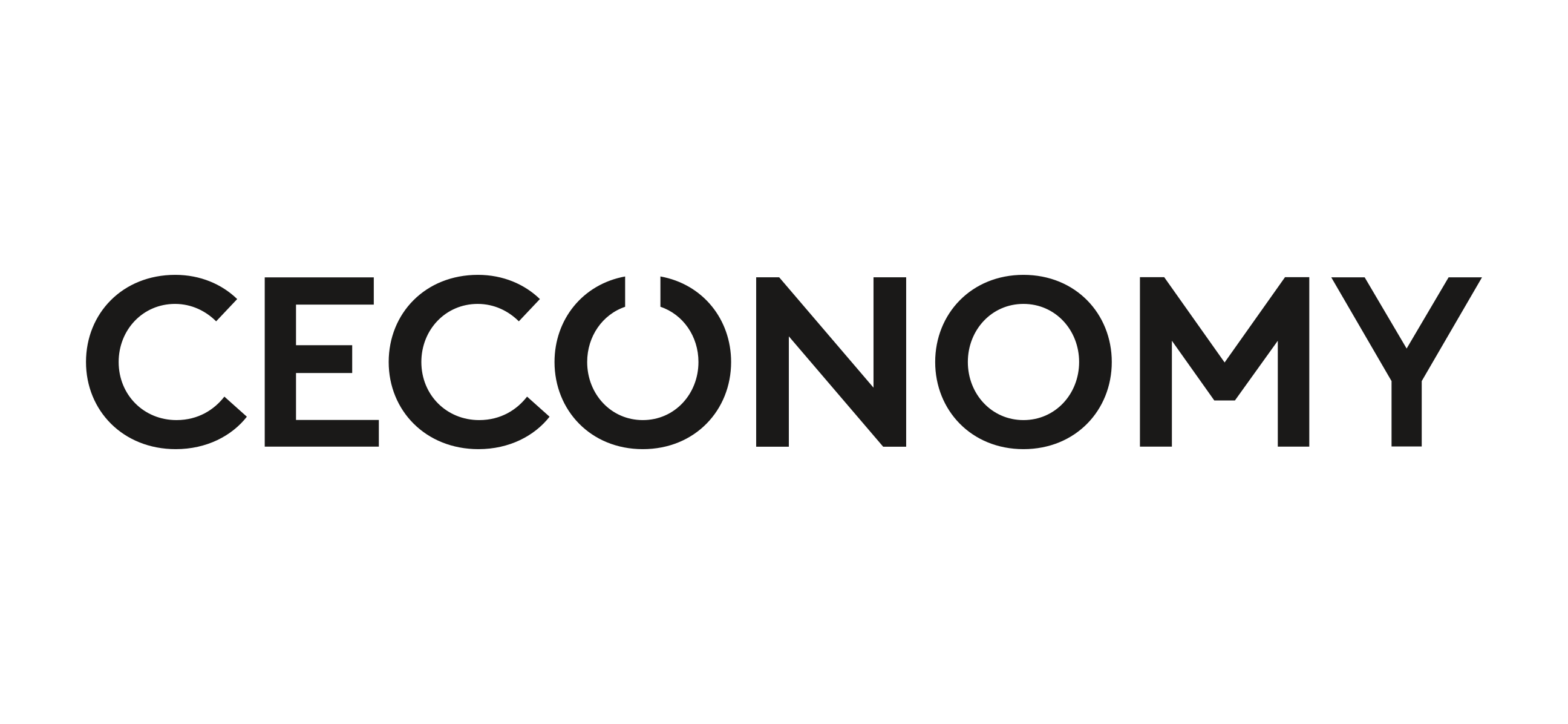 Ceconomy LOGO 采用极简黑色字标,中间的 “C” 被切割,形成开放式结构。设计理念传递出“连接、数字化与未来零售”的集团愿景。
