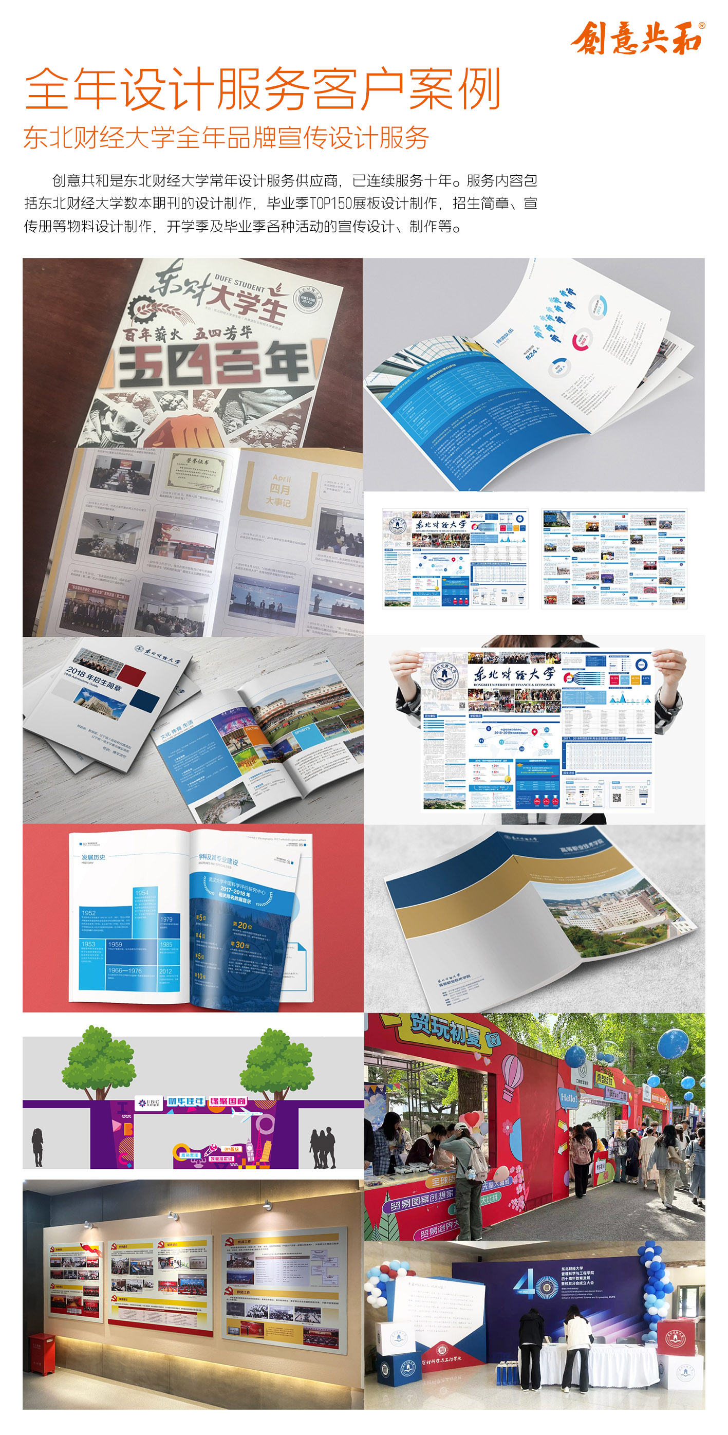 另一个典型案例是东北财经大学的企业文化(校园文化)宣传设计。创意共和为该校管理科学与工程学院 40 周年院庆打造全流程视觉设计,结合学院 “管理科学与工程学科获 B + 评估、位居全国财经类院校第一” 的学科优势,设计了主题展位、文化展板及纪念宣传册,用蓝、红、黄、紫色彩分区展现各学科方向的学术底蕴,让校园文化通过设计更具感染力,同时提升了学院的品牌影响力。