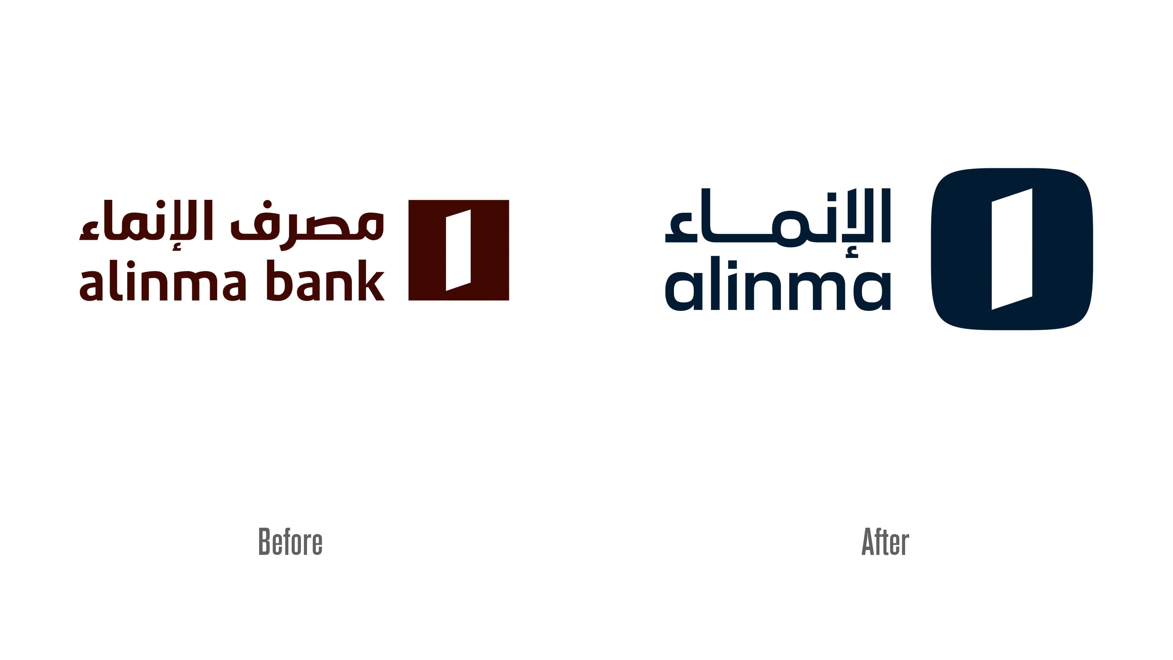 Alinma 银行新 LOGO 的核心元素 —— 标志性的 “门形” 几何符号得以完整保留,这一符号本身承载着 “开放”“信赖” 的寓意,高度契合银行业的服务属性,避免了品牌认知断层。与旧版 LOGO 相比,新设计去除了原有的锐利、僵硬线条,采用更柔和的轮廓,不仅让视觉感受更亲和,也更便于在手机端界面、线下网点招牌等不同场景中灵活应用;同时,LOGO 中的字体变得更纤细,笔画干净清晰,大幅提升了远距离阅读的辨识度。