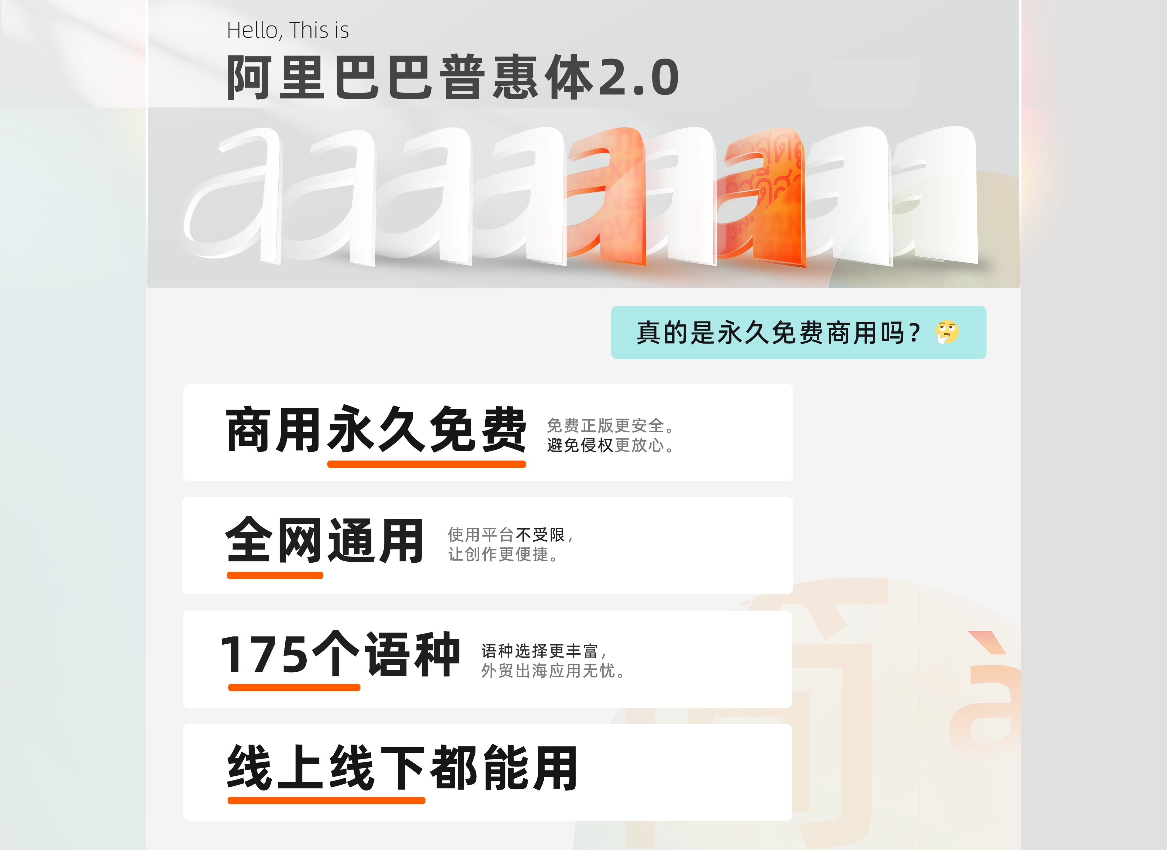 阿里巴巴普惠体 2.0下载地址(点击),涵盖178个语种,字符收录极丰富。设计简洁现代,兼具美观与实用,笔画粗细适中,结构均衡。标设网认为,这款全场景字体适用于跨境品牌商标、多语言产品LOGO、全球化企业标识等场景,开放的商业授权政策让个人与企业均可放心使用,是商业设计中的“全能之选”。